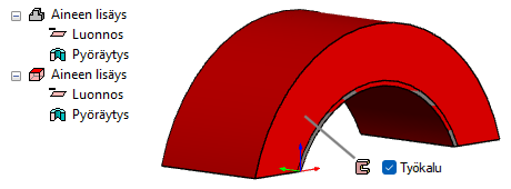 - Piirre, jolla on ominaisuus Työkalu. Työkalulla leikataan seinän geometria, joten sen