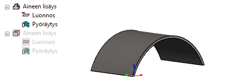 Tallenna osa komponenttikirjastoon, ja lisää komponentti arkkitehtimalliin. Työstävä osa ei näy oletuksena mallissa, mutta saat sen näkyviin painamalla M-näppäintä. Näppäimen painallus tuo työstävän osan vuoroin näkyviin ja pois näkyvistä. Työstävän osan erotat mallissa punaisesta väristä.