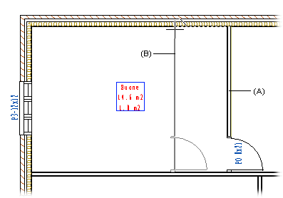 Jos kopioitavan seinän pää muodostaa T-liitoksen toisen seinän kanssa, ja sijoitat kopion siten, että samanlainen liitos on mahdollinen, ohjelma luo sen automaattisesti. Alla olevassa kuvassa seinä B on seinän A kopio, ja T-liitokset viereisiin seiniin muodostuvat automaattisesti, kun seinän paikka osoitetaan.