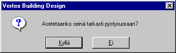 ehdottaa seinän asettamista täsmälleen pysty- tai vaakasuoraan, esimerkiksi:
