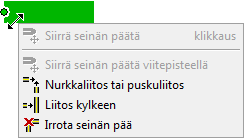 Huomaa: Seinän pään siirtokahva on punainen, kun päässä on liitos toiseen seinään. Kahva on sininen, kun liitosta ei