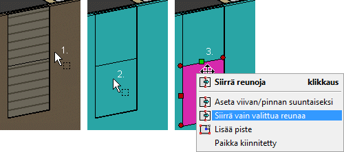 Voit siirtää pelkästään valitun seinäkappaleen reunaa valitsemalla toiminnon keskikahvan tilannekohtaisesta valikosta.