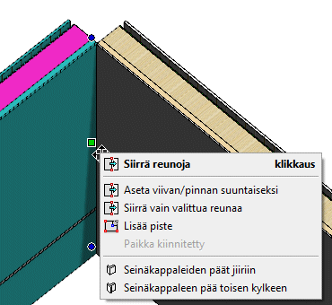 - Varsinaista liitosta ei seinäkappaleiden välille synny, joten muotoilu ei seuraa mallin muita muutoksia.