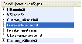 Seinä-keskusteluikkuna avautuu. - Valitse Seinäkirjastot ja seinätyypit -luetteloruudussa kirjasto ja luokite. Voit muokata