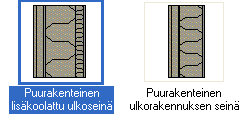 - Ominaisuudet ovat käytettävissä ei-kerroksellisen elementointimenetelmän yhteydessä. Jos yhdellekin seinän kerrokselle on valittu Rakennetyökalu, ominaisuudet eivät ole käytettävissä. Katso Valitse rakennetyökalu.