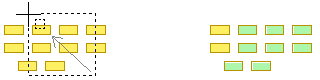 Voit valita objektit rajaamalla suorakaiteen muotoisen alueen. Valituiksi tulevat joko alueen sisäpuolelle kokonaan jäävät objektit, tai myös objektit joita alue leikkaa riippuen siitä vedätkö hiirtä oikealta vasemmalle, vai vasemmalta oikealle.