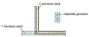 Jos valitut objektit muodostavat liitoksen, esimerkiksi 2 seinää nurkkaliitoksen, myös liitos kopioituu geometrian heijastuksessa.