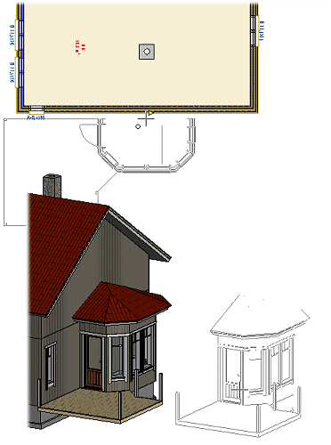 Tilaryhmän objektityyppi on sama kuin Rivitalosovelluksessa käytetyn alimallin. Se lisätään päämalliin samalla toiminnolla kuin alimalli. Yhteys tilaryhmämalliin säilyy, kunnes purat tilaryhmän päämalliin. Kun yhteys on olemassa, voit muokata tilaryhmämallia, ja tekemäsi muutokset päivittyvät päämalliin. Vaikka tilaryhmämalli voi sisältää useita eri rakennusosia eri kuva-mallipareissa, voit päämallissa käsitellä (siirtää, peilata) tilaryhmää yhtenä kokonaisuutena siinä kuva-malliparissa, johon lisäät sen.