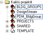 Voit tallentaa tilaryhmärakennuksen paikalliseen arkistoon tai viedä sen DesignStream-järjestelmään, jos käytössäsi on DesignStream-yhteys -lisäoptio. Kun avaat tilaryhmärakennuksen muokkausta varten paikallisesta arkistosta, valitse Avaa rakennus -keskusteluikkunassa tallennuspaikka BLDG_GROUPS. Kun avaat tilaryhmämallia DesignStream-järjestelmästä, valitse tallennuspaikka PDM_BldgGroup.