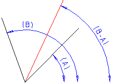 - Valitse toinen vertailusuora (B). Elementti asettuu erotuskulmaan (B-A).