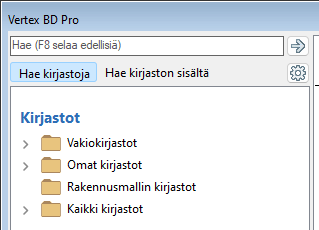 - Valitse päätason kansio, josta haetaan. Jos haluat hakea sekä vakiokirjastoista, omista kirjastoista että rakennuksen kirjastoista, valitse Kaikki kirjastot.