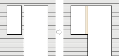 Vierekkäiset, toisissaan kiinni olevat ikkunat tai ovet puhkaisevat seinään yhtenäisen aukon. Tarvittaessa voit muodostaa toisistaan erillään olevista ikkunoista ja ovista aukkoyhdistelmän, joka puhkaisee seinään yhtenäisen aukon. Aukkoyhdistelmän ja seinän välille muodostuu liitos.