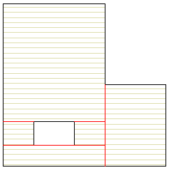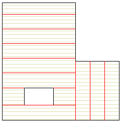 Esimerkissä lisätään jakolinjat lattiarakenteen peruskerrokseen alla olevan kuvan mukaisesti. Vaakarakenteen esitystapa on pakattu peruskappale.