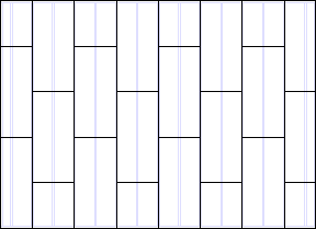 - Ruudukko (GRID) - Levyt jaetaan levytysalueelle siten, että levyjen saumat ovat jatkuvat. Parametri Limitys = Ei.