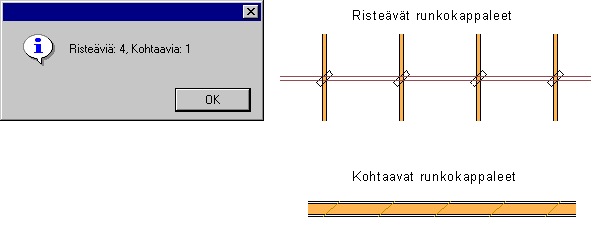 Ohjelma ilmoittaa viesti-ikkunassa niiden kohtien lukumäärän, joissa runkokappaleet risteävät tai kohtaavat, ja merkitsee risteyskohdat 2D-piirustukseen. Kohtaavilla runkokappaleilla tarkoitetaan samansuuntaisia, osittain tai kokonaan päällekkäin limittyviä kappaleita. Risteävät ja kohtaavat runkokappaleet merkitään piirustukseen eri tavoin.