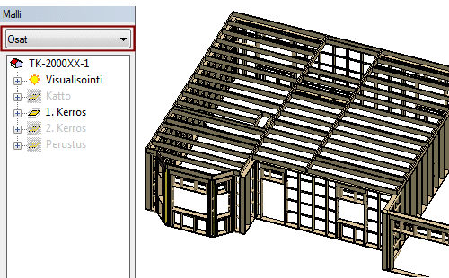 - Valitse objektipuun filtteriluettelosta Osat.