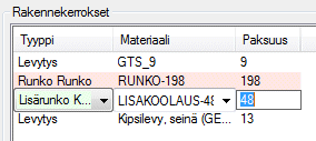 - Napsauta kerroksen riviä Rakennekerrokset-luettelossa.