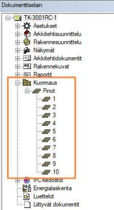 - Sulje keskusteluikkuna OK-painikkeella. Pinot päivittyvät dokumenttiselaimen