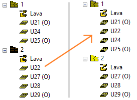 - Valitse elementti U22, joka siirretään.