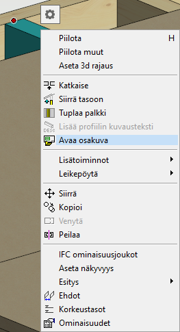 Avaa osakuva valitsemalla osa ja tilannekohtaisesta valikosta Avaa osakuva.