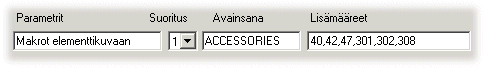 - Kirjoita Lisämääreet-kenttään niiden makrokomponenttien
