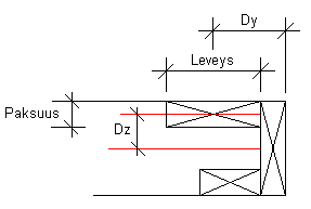Dz ilmoittaa osan keskiviivan etäisyyden rungon keskiviivasta. Positiivinen suunta on rungon keskiviivalta kohti elementin ulkopintaa. Dy ilmoittaa osan nimellisviivan etäisyyden osan keskeltä. Reunatolpilla Dy on puolet poikkileikkauksen leveysmitasta, muilla runkotolpilla Dy = 0, ja tukitolpilla Dy voi olla esimerkiksi alla olevan kuvan mukainen. Paksuus on rungon syvyyden suuntainen poikkileikkausmitta ja Leveys poikkileikkausmitta elementin pituussuunnassa.