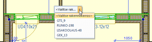 Voit valita muokattavan rakenteen osoittamalla rakenteen osan Alt-näppäin painettuna. Rakenne voi olla elementti (seinä-, lattia- tai katto-) tai vaakarakenne.