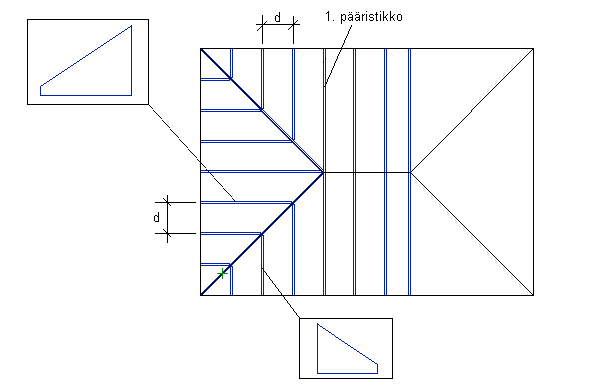 valittu yläpohja, tai kantavaksi seinäksi valittu päätyseinä.