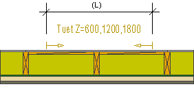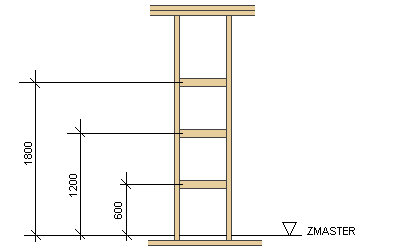 Vaakataustatuet lisätään aina kahden runkotolpan väliin. Sijoita vaakataustatukimakro pohjakuvassa esimerkiksi kalusteen kohdalle. Kun luot osat seinäelementtiin, ohjelma lisää vaakataustatuet pystysuunnassa tasavälein lähimpien tolppien väliin.