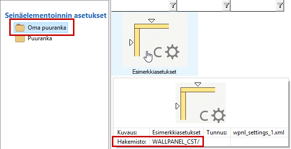 Ensimmäinen asiakaskohtainen kirjasto tallentuu levyllä kansioon ../custom/complibs/wallpanel_cst. Tämän jälkeen kirjastojen kansiot nimetään wallpanel_cst_1, wallpanel_cst_2, jne.