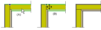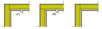 Käännä nurkka. - Osoita seinäelementtiä lähellä nurkkaa, jonka haluat kääntää (A). Jokaisen rakennekerroksen nurkka kääntyy.