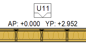 Voit lisätä seinäelementin runkokerroksen ylä- ja alapinnan korkeudet pohjakuvaan elementin tunnuksen yhteyteen.