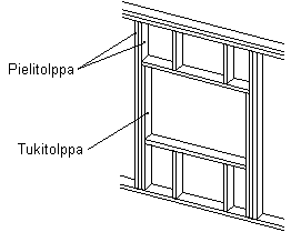 tolpitus. - Valitse detalji, aukkopalkin poikkileikkausmitat sekä tuki- ja pielitolppien lukumäärä