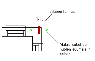 - Osoita seinien suunta: lukitse kohdistin seinien suuntaan ja osoita mikä tahansa piste. Ohjelma lisää makron, ja merkitsee valitun kohdealueen rajat. Makrolla ja alueella on yhteinen tunnus.