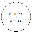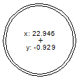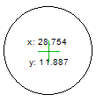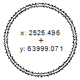 Voit lisätä pohjakuvaan symbolin, joka näyttää valitsemasi pisteen x- ja y-koordinaatit. Koordinaatit lasketaan valitsemasi referenssipisteen mukaan. Symboli on ympyrä, jonka sisälle koordinaatit lisätään tekstinä. Ympyrän viivatyyppi on erilainen eri referenssipisteillä.