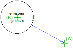 ensin piste (A), jonka koordinaatit haluat näyttää symbolissa. Sen jälkeen osoita symbolin paikka (B).