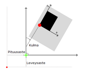 - Oletuksena mallin kulma on 0, jolloin rakennusmallin y-akseli on leveysastesuoran suuntainen.