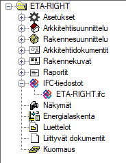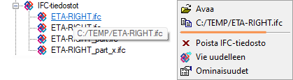 IFC-tiedostot -haarassa. - Valitse hiiren oikealla avautuvasta valikosta