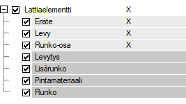 - Elementit - Valitse kaikki elementit, elementtien kerrokset ja osat.