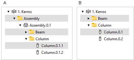- Jos rakennusmallissa on alimalli, jossa on objekteja eri kerroksissa, valitse miten alimallin objektien