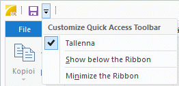 Näytä pikatyökalurivi valintanauhan ylä- tai alapuolella valitsemalla
