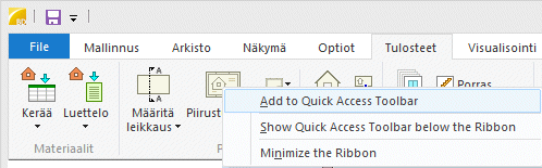 Voit lisätä usein käyttämiäsi valintanauhan toimintoja pikatyökaluriviin seuraavasti: