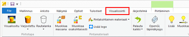 Ohjelmiston lisäoptioiden toiminnot löytyvät omalta välilehdeltään, esimerkiksi Visualisointi tai Optiot.