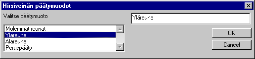 valittavista päätymuodoista.