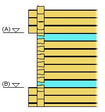 alarajan (A) ja ylärajan (B) suhteessa kerroksen peruskorkeuteen.