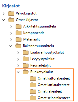 - Omat rakenteet - Jos työkalulle ei ole valittu rakennetyyppiä, se lisätään tähän kirjastoon.