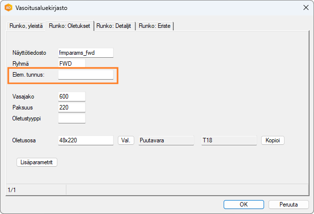 Päivitystoiminto lisää asiakaskohtaisten vaakarakenteiden (lattia, yläpohja, katto) runkotyökalukirjastojen tietokantaan FRMTOOL_FRAMING kentän PANEL_LABEL. Kenttään on mahdollista antaa elementin tunnuksen etuliite. Jos arvo on tyhjä, etuliite otetaan järjestelmän asetuksista kuten aiemmin.