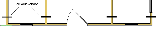 Jos käytät erillistä tilaryhmää optiona, poista ensin perusrakennuksesta optioitavien rakennusosien liitokset muihin rakennusosiin. Katkaise esimerkiksi seinät läheltä nurkka- tai T-liitoksia tai niiden kohdalta. Kun ratkaiset optiot, ohjelma muodostaa liitokset tilaryhmän seinien ja perusrakennuksen seinien välille, jolloin katkaisukohdat näy ratkaistussa rakennuksessa.