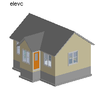 Kolmas julkisivuvaihtoehto elevc voidaan luoda kopioimalla optio eleva ja esimerkiksi vaihtamalla ikkunoiden ja ovien tyyppiä ja sijaintia kuistissa. Seinät pysyvät ennallaan.