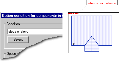 Sama perustus- ja katto-optio käy molemmille julkisivuvaihtoehdoille eleva ja elevc. Option ehto asetetaan käyttämällä Or-operaattoria. Alla olevassa kuvassa on esitetty katto-option optiolaatikko.